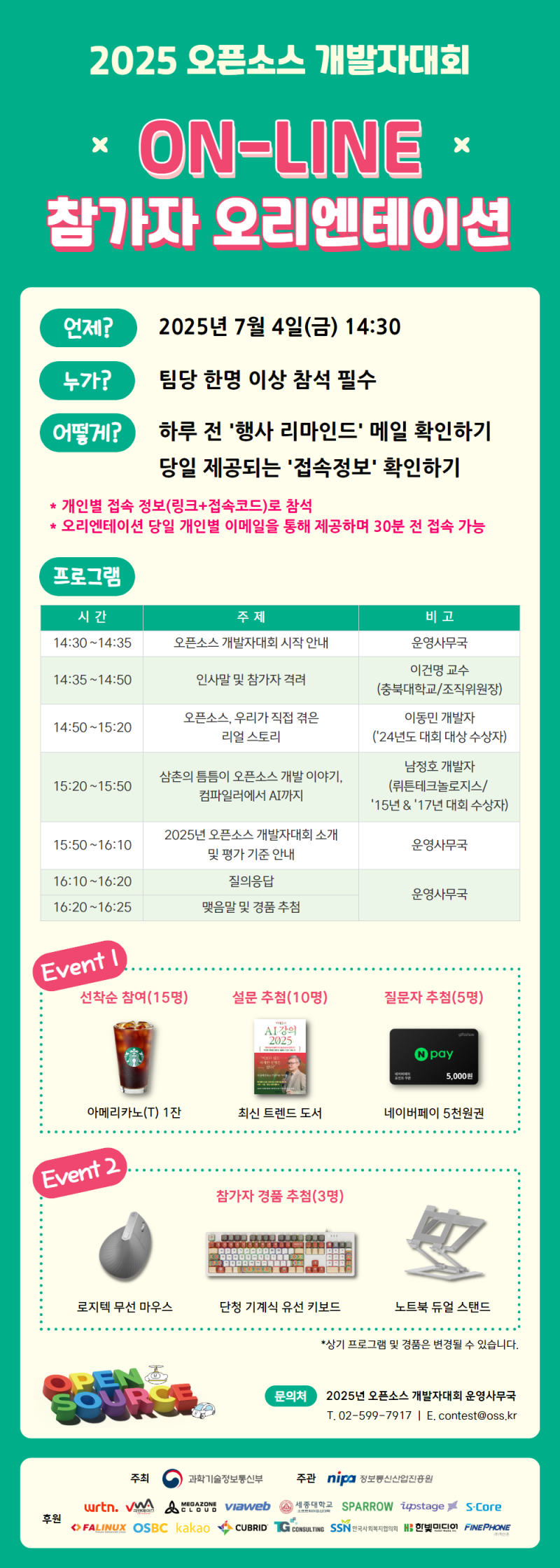 [공지] 2025 오픈소스 개발자대회 참가자 오리엔테이션 개최 안내(7월 4일)