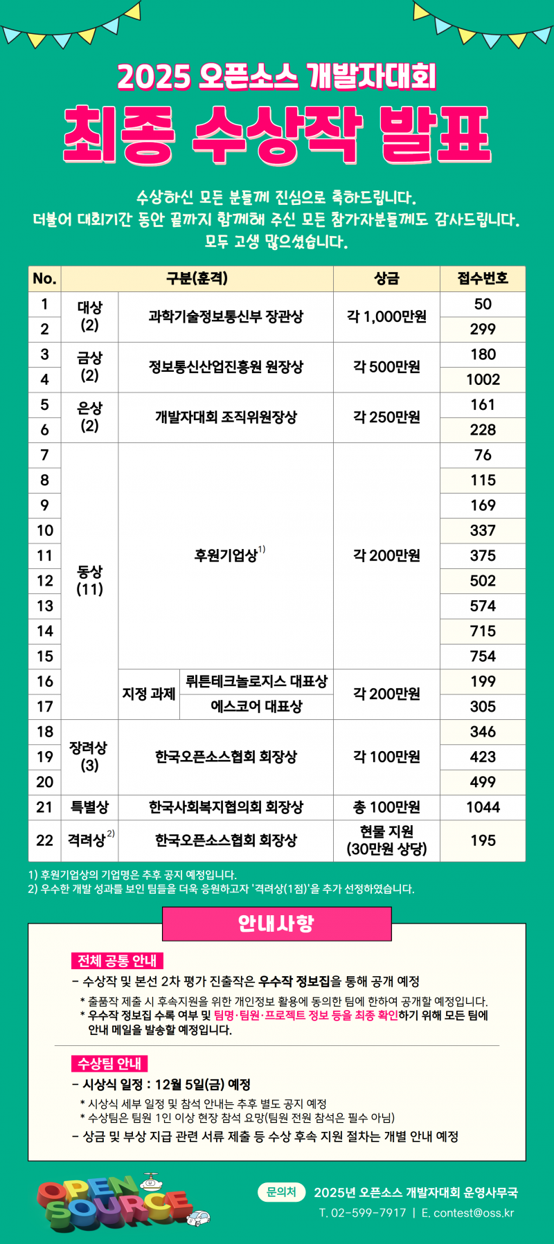[2025년 오픈소스 개발자대회] 최종 수상 결과 발표