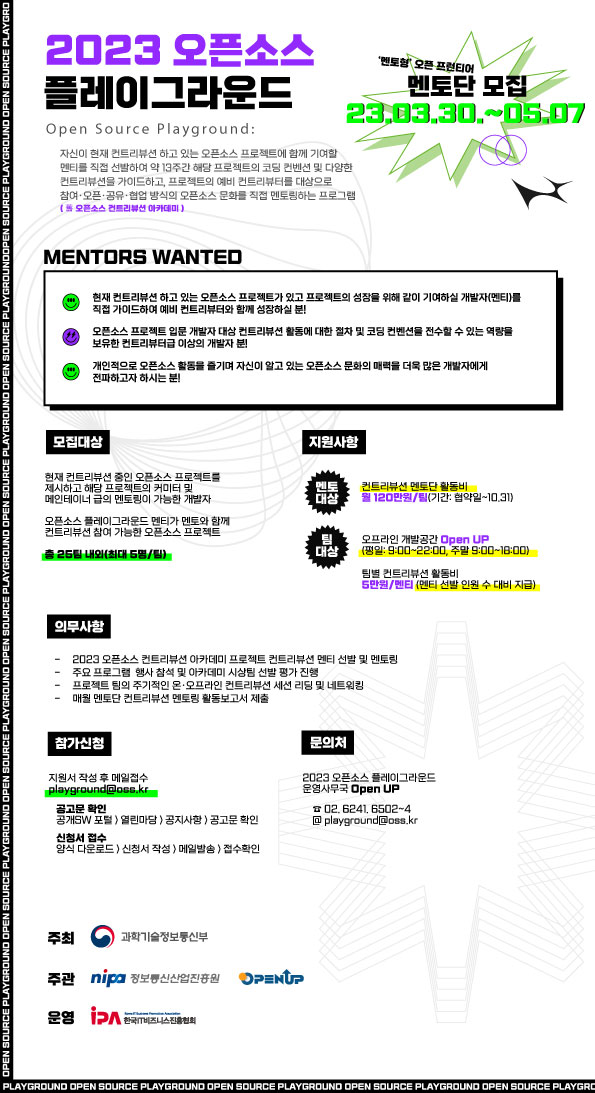 오픈소스 플레이그라운드 멘토(멘토형 프런티어) 모집 기간 연장 안내