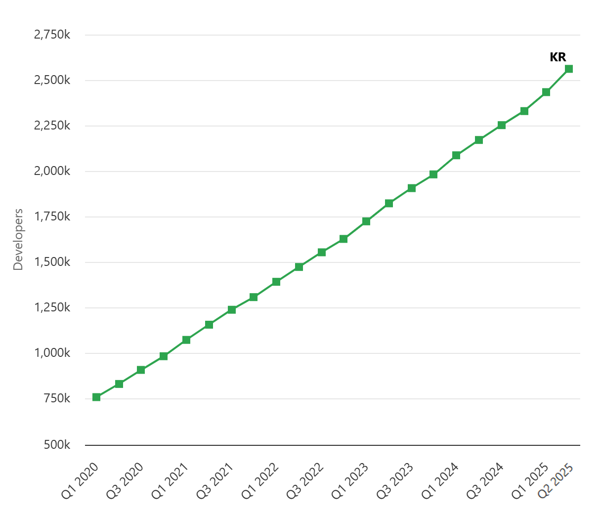 <개발자 증가 추이(2020 Q1~2025 Q2)>
