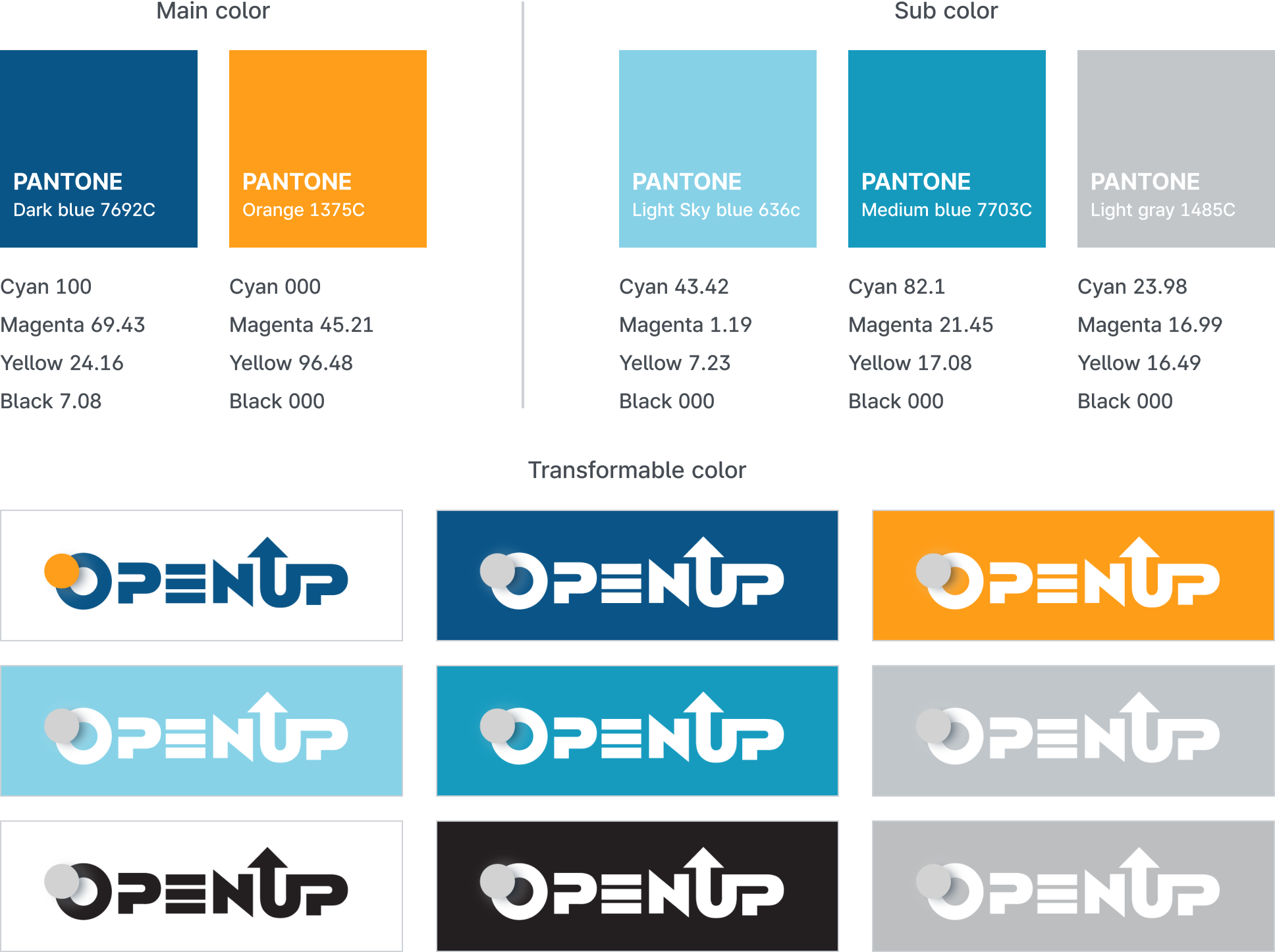 전용색상은 브랜드 이미지와 고유한 색상의 이미지, 형성과 고유한 심볼, 로고타입 등의 각종 요소에 적용되어 정확한 이미지를 전달하는 중요한 역할을 합니다. 사용시 정확한 색의 재현을 위한 주의를 요합니다.