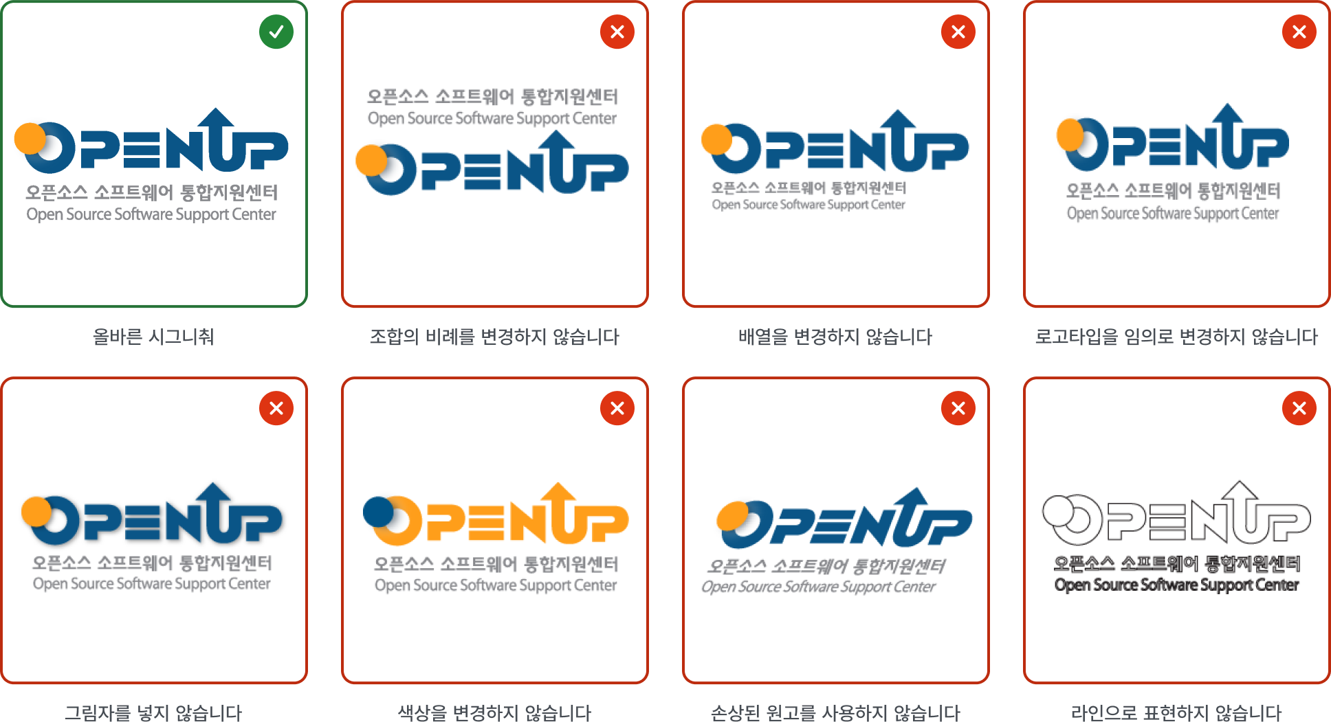 브랜드 이미지의 고유한 시그니처와 색상 이미지를 규정에 맞게 표현하고 심볼, 로고타입 등 각 요소에 적절히 이미지를 전달하는 중요한 역할을 합니다. 사용시 정확한 재현을 위한 주의를 요합니다.